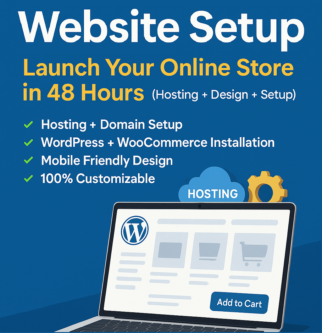 πŸš€ Website Setup Service – Launch Your Online Store in 48 Hours (Hosting + Design + Setup+Products)